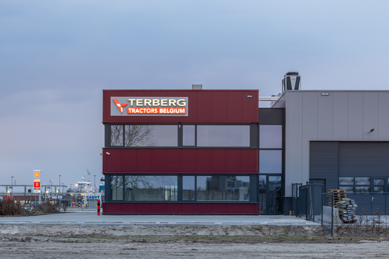 Garage with offices for Terberg Tractors Belgium • Port of Ghent • Collaboration with Arco Architecten (NL)